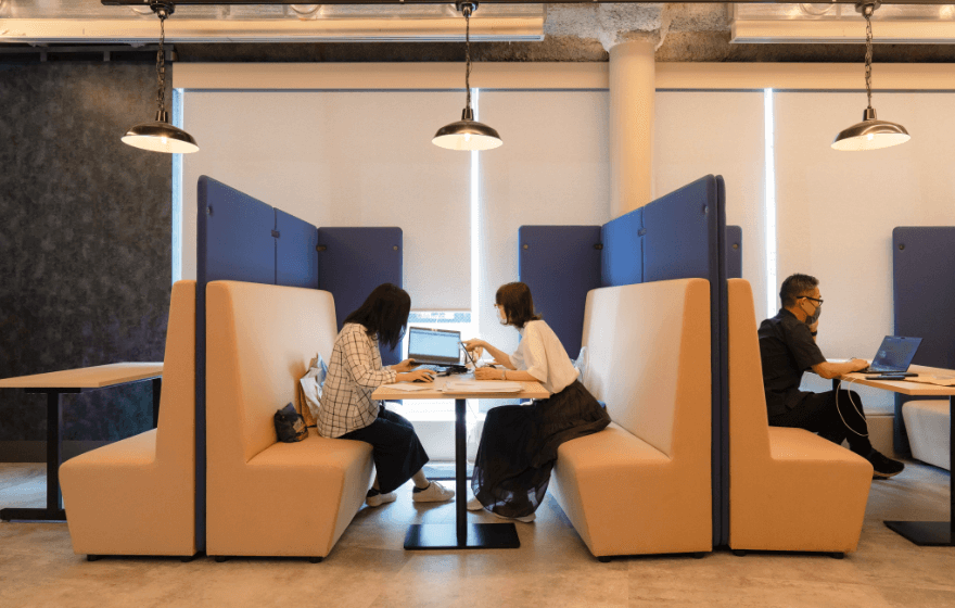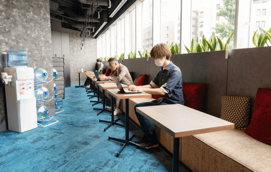コロナ禍はまだ収束を見ず、グループでワイワイ意見を出し合って何かを生み出せたら、というコンセプトを最大限に発揮する機会はまだ先になりそうですが、最小限の時間でソーシャルディスタンスを保ちながらであっても、自由なスタイルで集まることのできるユニークな空間が社内にあることは、私たちにとって心の拠り所であり、ささやかな息抜きをも叶えてくれます。