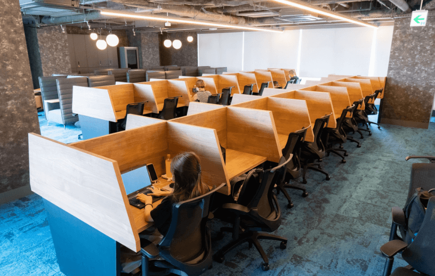 • グループでのミーティングや外出の合間に、こちらで急ぎの業務を集中して済ませる、というスタッフも多くいるようです。
